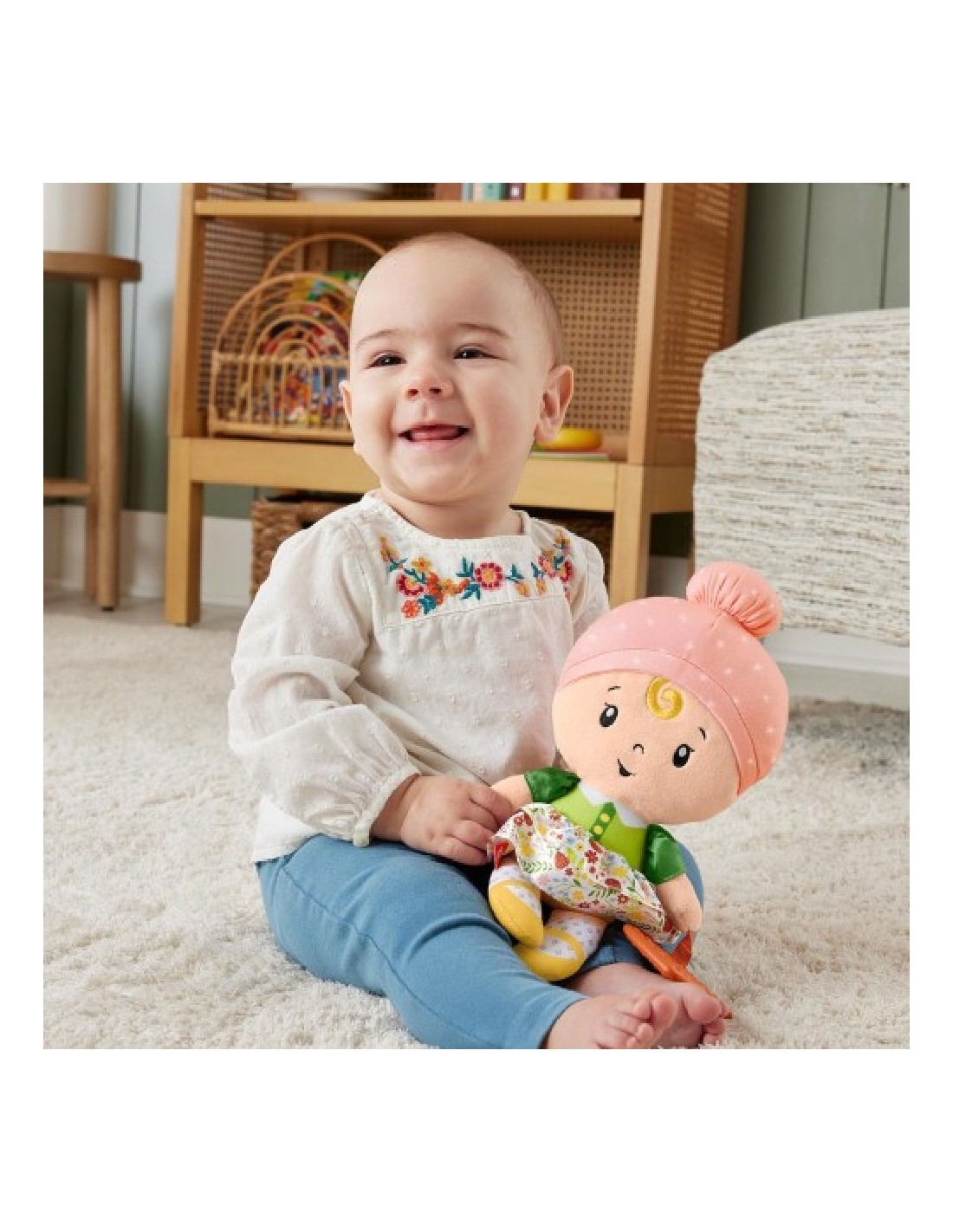 MATTELAnime a su pequeño a abrazar a un nuevo amigo con Mi primera muñeca Abracitos y ruiditos de Fisher-Price. Cada muñeca adorable y suave está diseñada para abrazarla y celebrar la diversidad. Las manitas pueden tocar y explorar los coloridos tejidos y las texturas de la muñeca, y cuando tu bebé abrace a su nueva amiguita, recibirá un suave tintineo. Cada muñeca viene con un mordedor sujeto para que tu peque se divierta aún más con las sensaciones (y los mordisquitos).