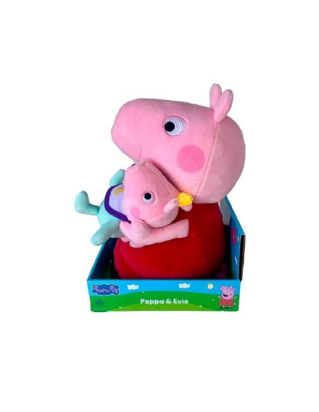 Peppa, la cerdita más famosa de la televisión, luce su característico vestido rojo y su sonrisa contagiosa, mientras que Evie, la pequeña de la familia, está lista para ser cuidada y mimada. Juntas, ofrecen una experiencia de juego que fomenta la imaginación y el cariño.