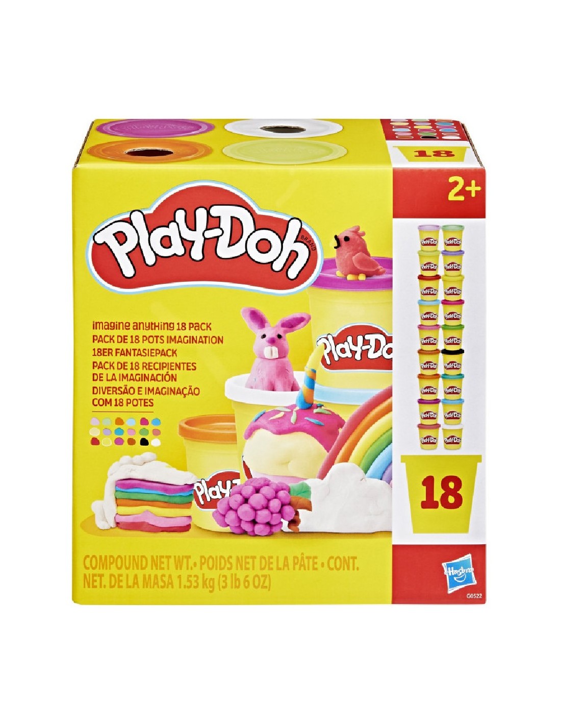 HASBRO¡Quién sabe qué crearán ahora con el pack de 18 botes Imagine Anything de Play-Doh! Es una caja repleta de diversión imaginativa con los botes de 84 gramos de plastilina que vienen en toda una gama de colores surtidos. La textura suave y moldeable, los colores llamativos y el clásico aroma de Play-Doh hacen que este set sea un maravilloso juguete sensorial para los niños a partir de 2 años. Lleva un bote o dos a todas partes para mantener ocupados a los pequeños o repártelos en las salas de clases o como regalos de fiestas.