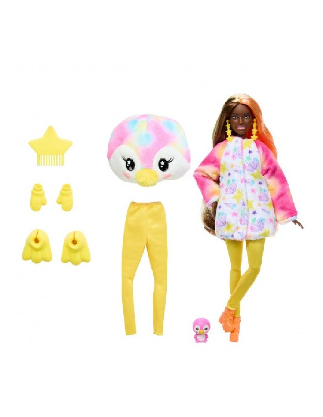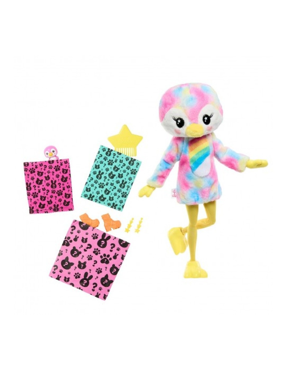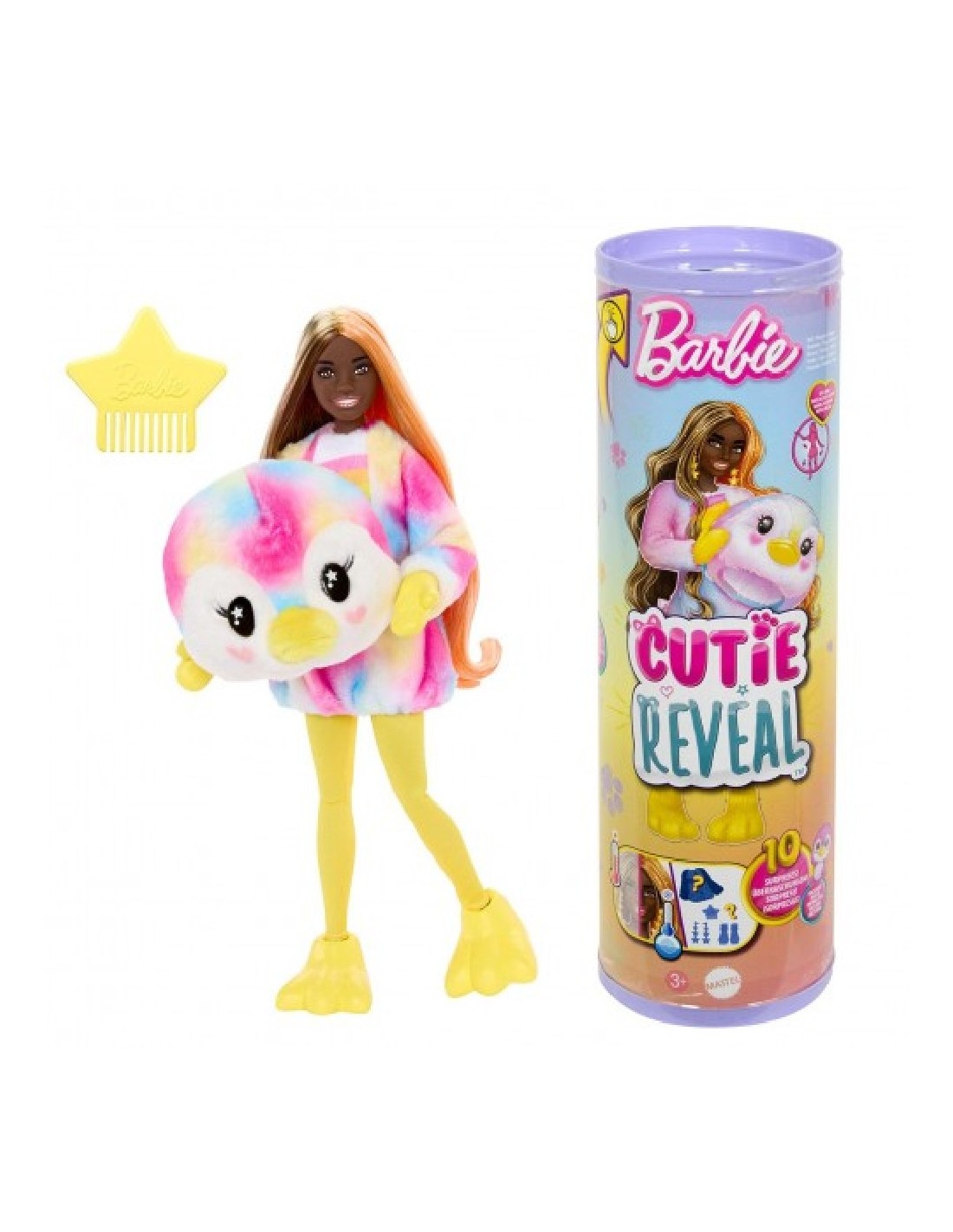 MATTELMuñeca Barbie Cutie Reveal Colección sueños de colores. Muñeca con disfraz de perro pingüino de colores, con peine, mascota y accesorios sorpresa de moda.