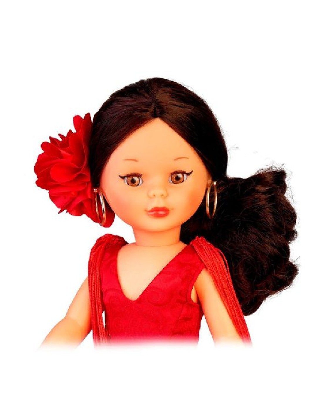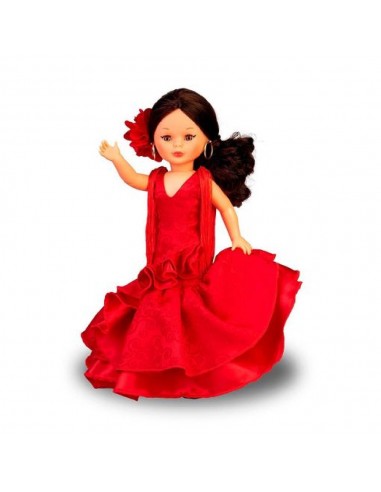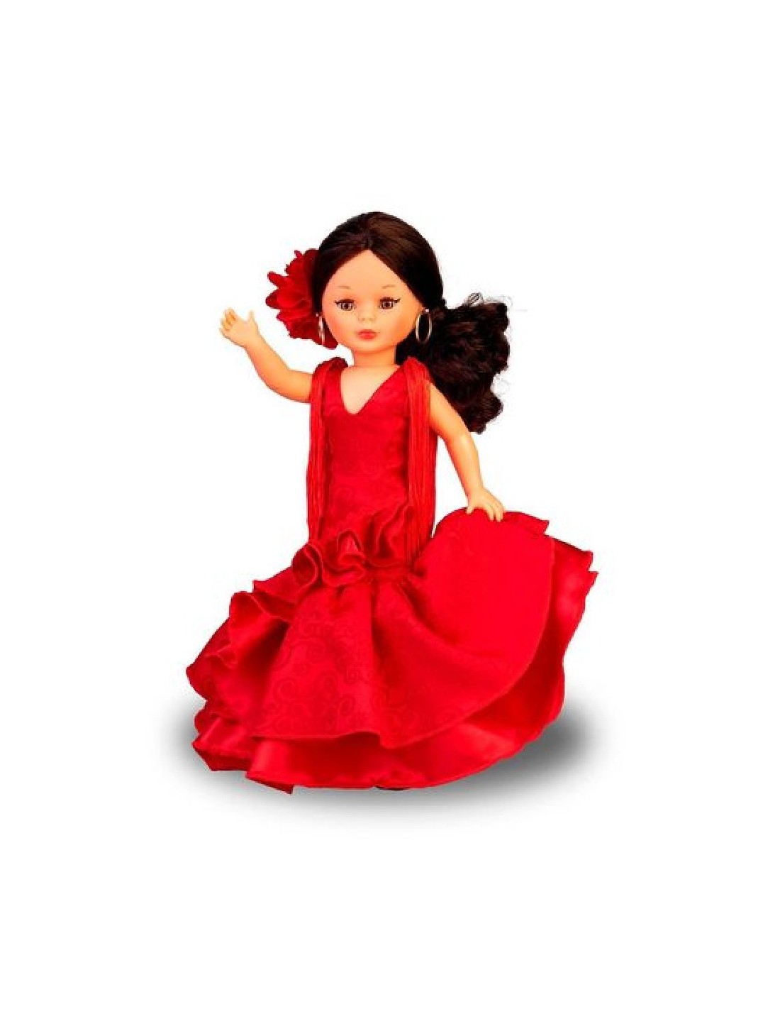 FAMOSANancy Flamenca Coleccion Ref: NAL02000 Reedición de Nancy Flamenca. Con vestido de raso rojo sin mangas y flecos desde los hombros. Completa su look con una coleta lateral rizada con flor roja a un lado, pendientes dorados y manoletinas rojas.