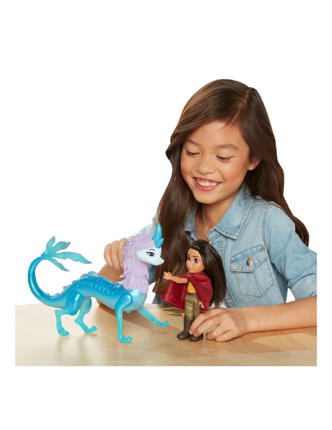 La sabia y majestuosa Sisu, la última dragona, debe unir fuerzas con Raya para salvar a Kumandra de las fuerzas de la oscuridad. ¡Celebra el vínculo especial entre Raya y Sisu con el set de regalo Raya y el Último Dragón de Disney: Raya y Sisu! Raya luce su atuendo clásico, con capa extraíble, y Sisu, en su forma de dragón, luce una hermosa mezcla de morados y azules. Para mayor diversión, tanto Raya como Sisu son totalmente articuladas y Sisu presenta un colorido espectáculo de luces que se mueve por su cuerpo. Con un tamaño perf