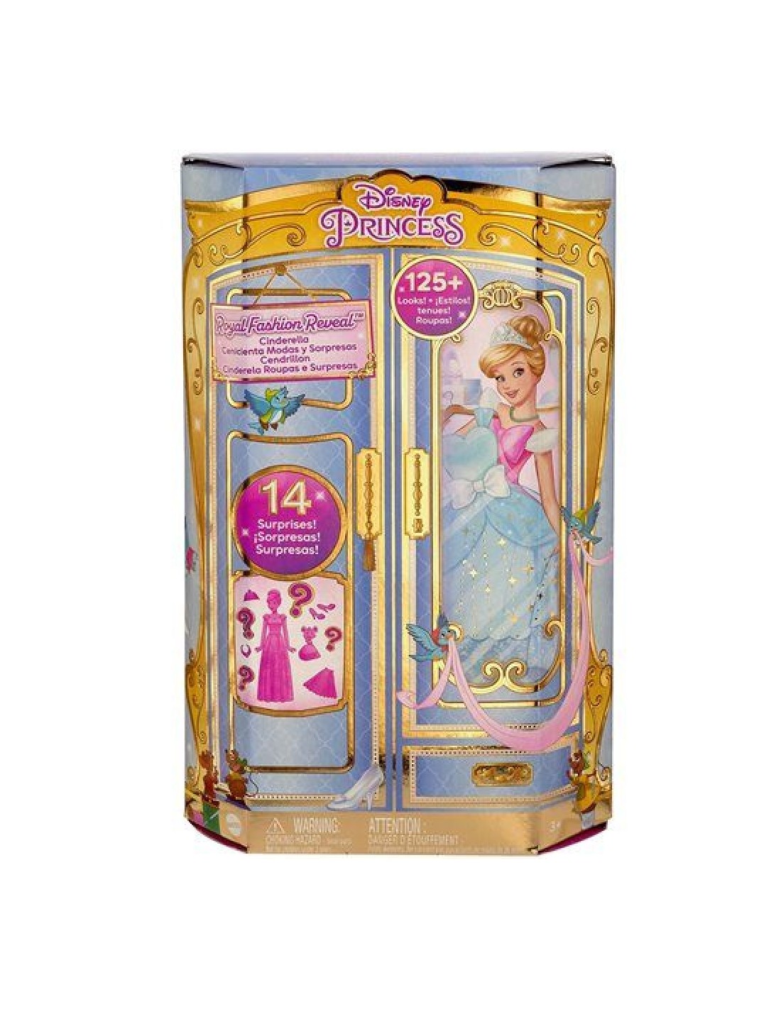 ¡La moda se une a la diversión de abrir cajas con Royal Fashion Reveal Cenicienta! A los niños les encantará abrir el paquete inspirado en el armario para descubrir una muñeca de Cenicienta, un amigo especial del personaje y 12 hermosos conjuntos y accesorios que pueden combinarse para crear looks únicos.