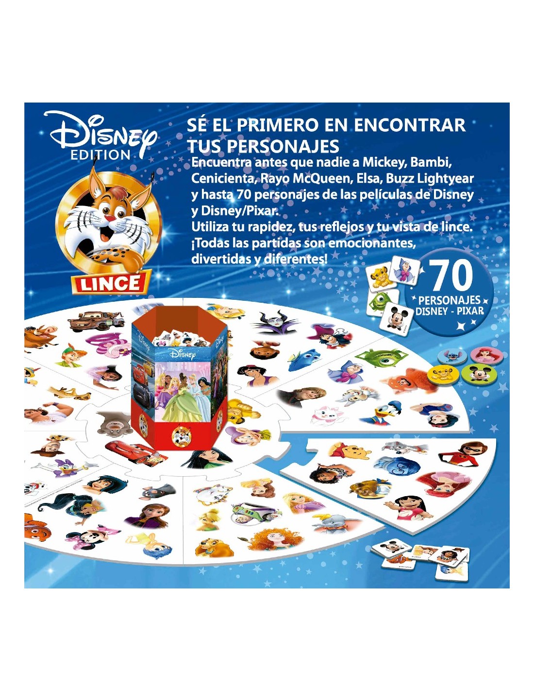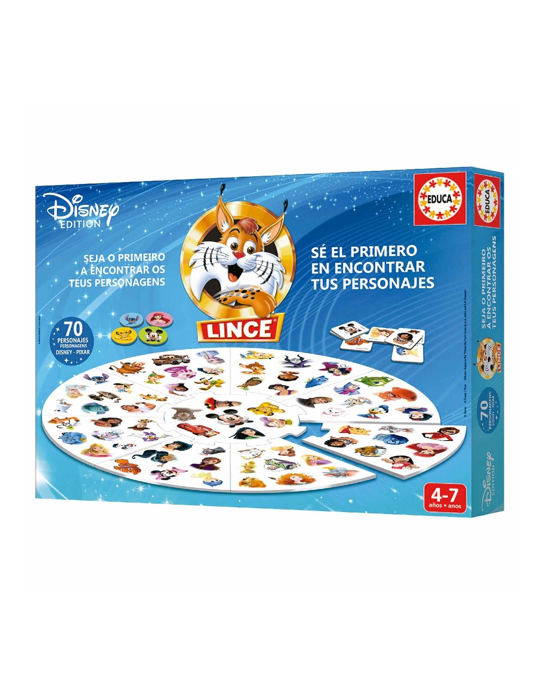 EDUCA BORRASNuevo juego del Lince con los personajes más populares de Disney y Disney/Pixar. Sé el primero en encontrar las imágenes en el tablero, reúne como tantas fichas como sea posible y gana. Contenido: tablero de juego, 70 fichas, 12 tarjetas de color, una caja e instrucciones. Es un juego muy divertido y atractivo, perfecto para divertirse en familia y con amigos. recomendado para niños y niñas a partir de 4 años. ©Disney. ©Disney/Pixar. ©Disney Based on the ‘Winnie the Pooh’ works by A.A. Milne and E.H. Shepard.