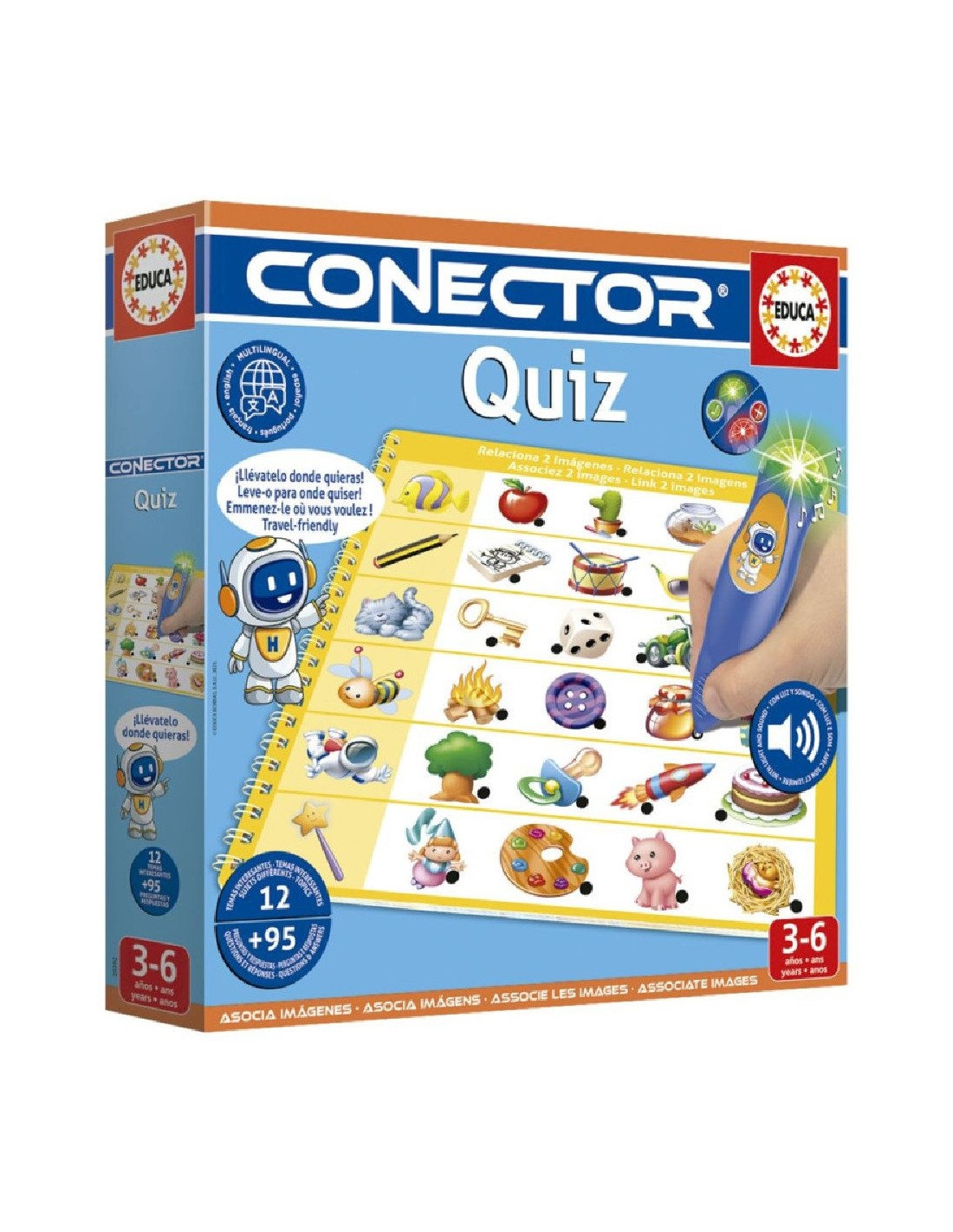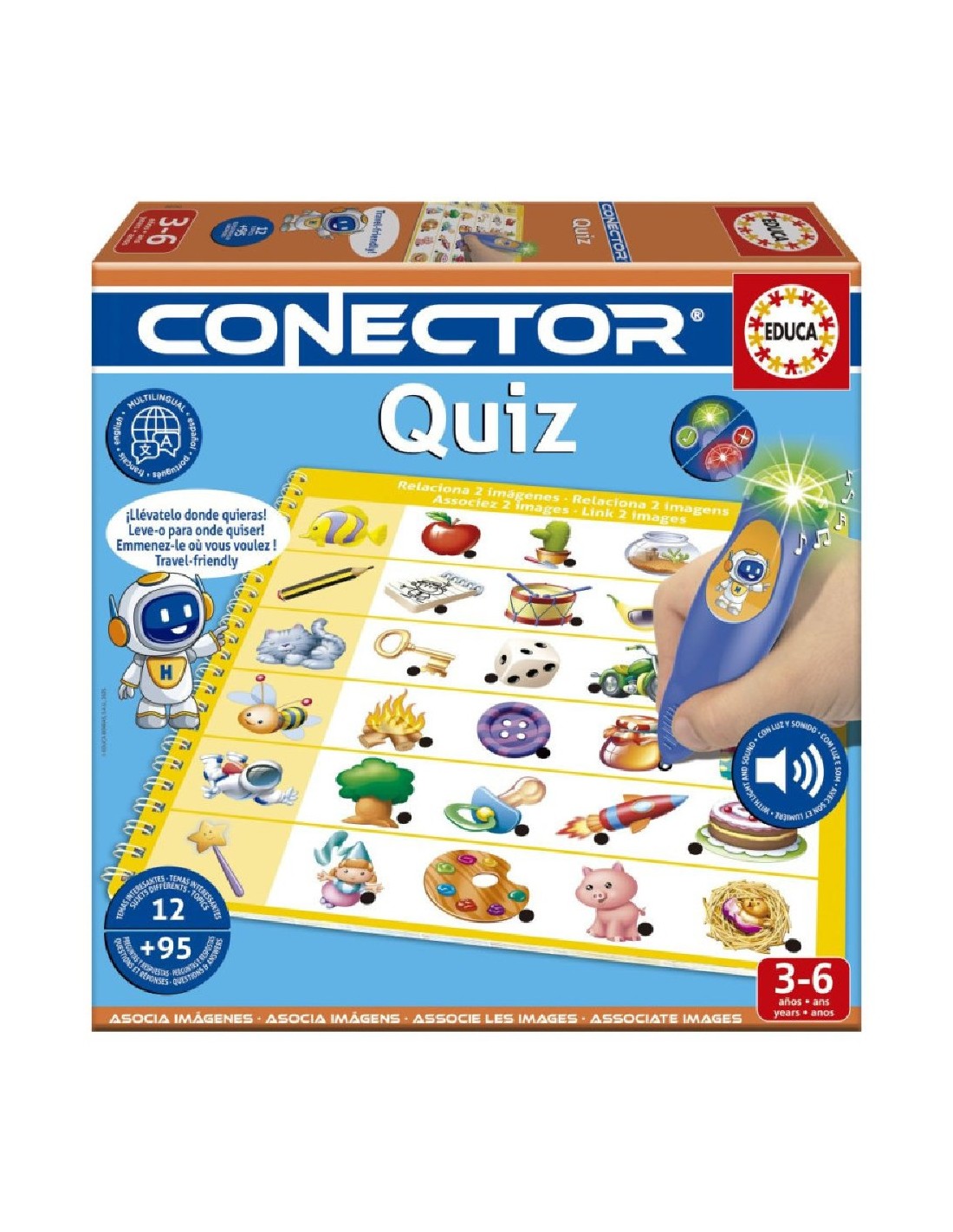 EDUCA BORRAS¡Llévatelo a donde quieras! Nuevo CONECTOR QUIZ en formato libro con boli con luz y sonido. Temas educativos diferentes con el que los niños ejercitaran su capacidad de asociación, razonamiento y observación.