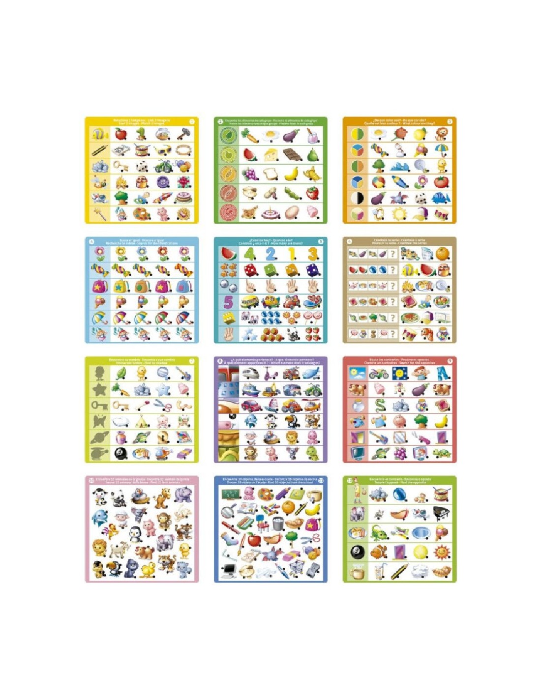 APRENDERÁN A: Números, letras, formas y otros conceptos educativos se combinan en este juego en el que los niños y niñas ejercitarán su capacidad de asociación, razonamiento y observación.