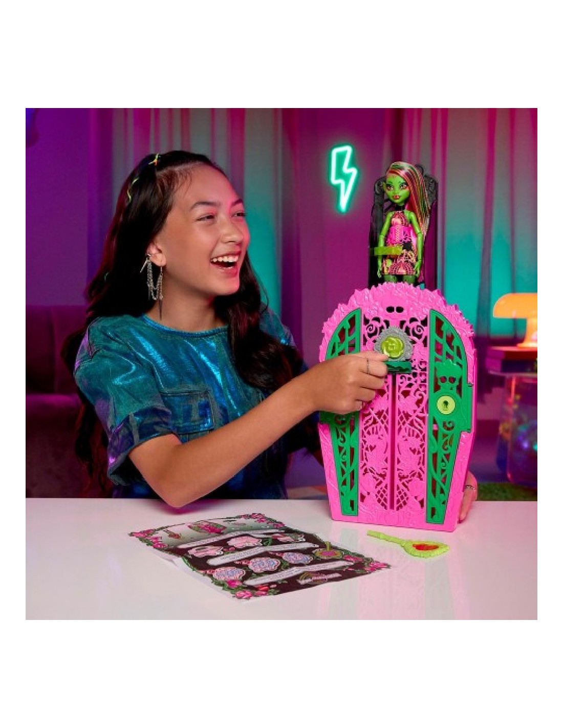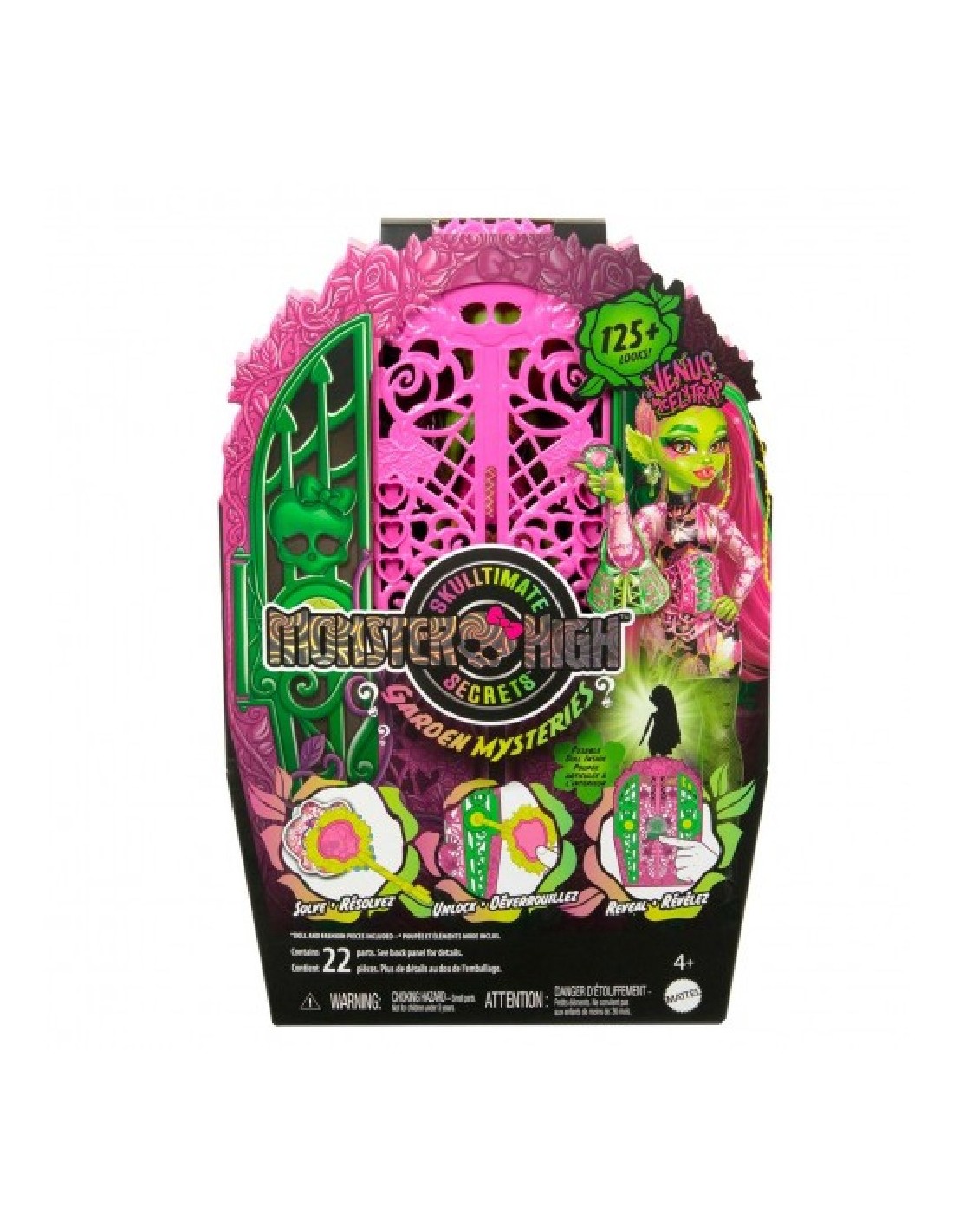 MATTELDescubre los secretos que se esconden tras las puertas de Monster High con este conjunto de armario Skulltimate Secrets: Jardín misterioso. Venus McFlytrap tiene que asistir a una espeluznante merienda, pero ¡nadie la encuentra por ninguna parte! Busca pistas para localizarla y descubre más de 19 sorpresas en 3 divertidos y aterradores pasos: resolver, desbloquear y revelar.