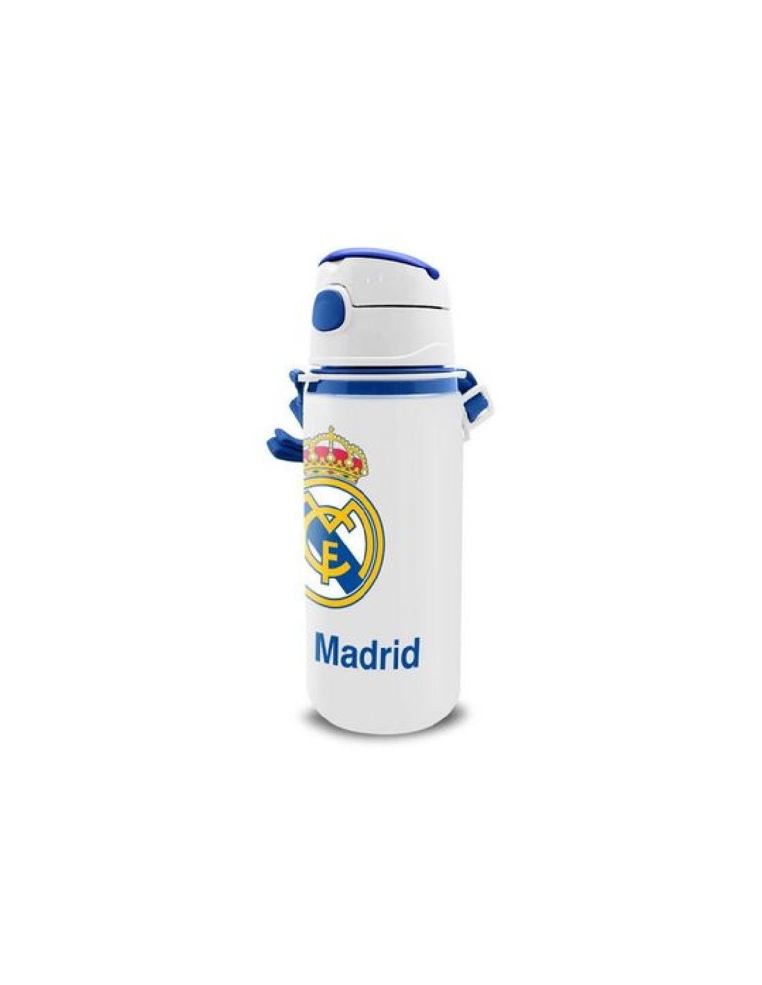 Botella Cantimplora Con Correa Aluminio Real Madrid Blanca 600 Ml