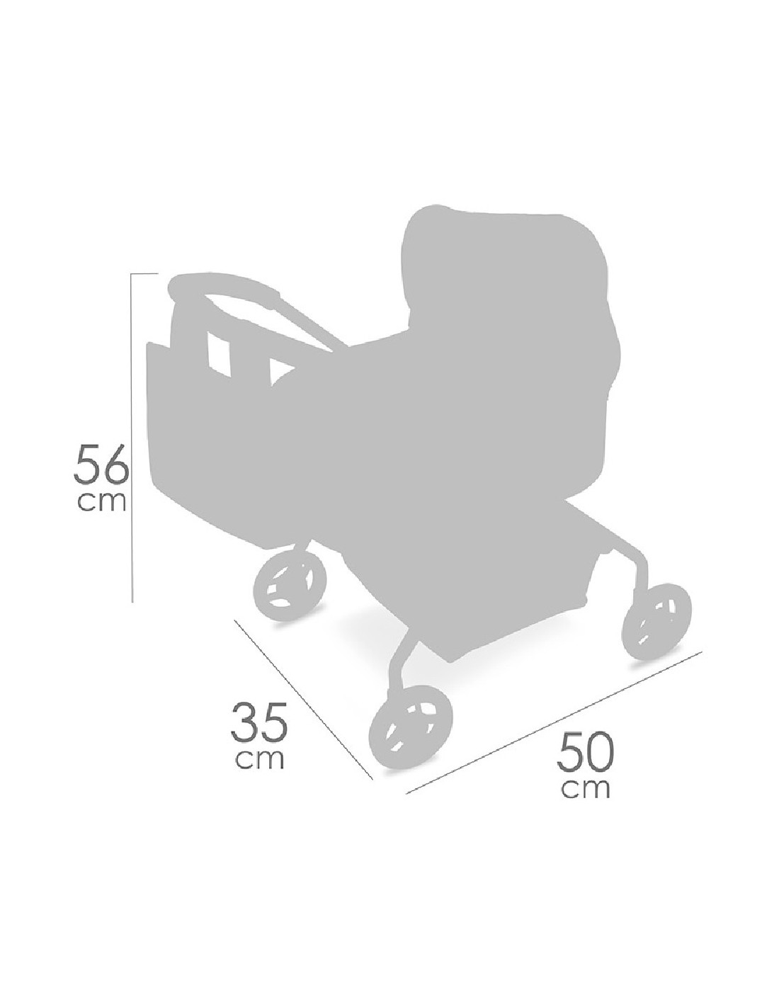 Dimensiones aproximadas del carro de muñecas: 56 cm de alto hasta el manillar, 35 cm de ancho y 50 cm de largo.