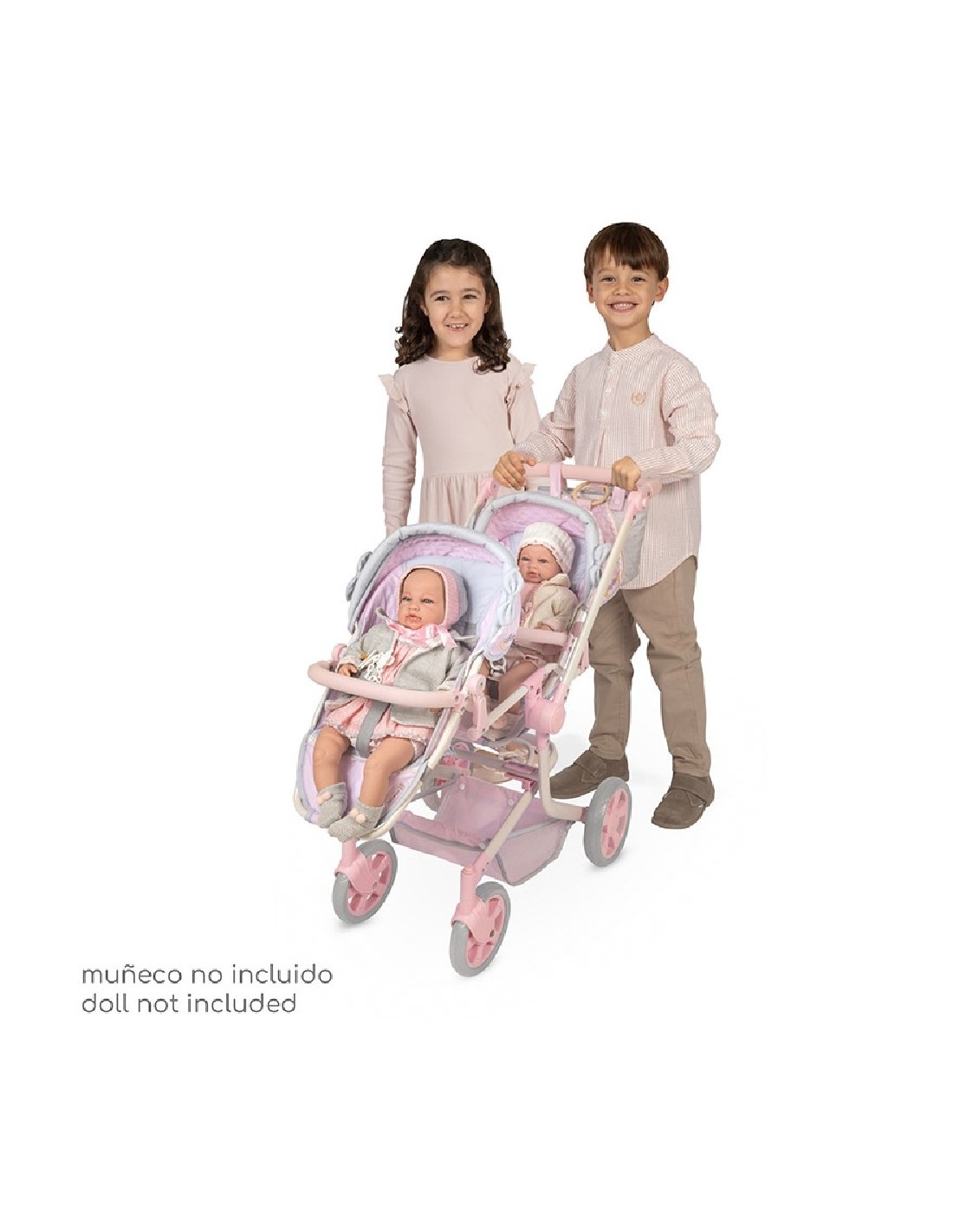 DECUEVAS TOYSDescubre el carrito gemelar más alto del mercado, el manillar se encuentra a casi un metro de altura, con estructura plegable y sillas con multiposición, para disfrutar de tus bebés como siempre has soñado. Este espectacular Carro de Muñecas Gemelar de la inspiradora colección Sophie, es una oportunidad sin igual de salir a pasear en familia, disfrutando del potencial que aporta al desarrollo de habilidades en los peques, el juego de imitación más completo y mágico.