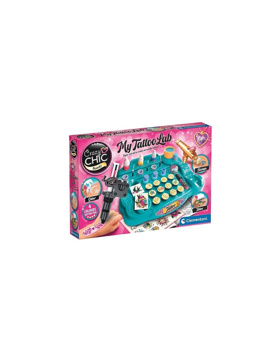 CLEMENTONI¡La creatividad no tiene límites con el laboratorio de tatuajes Crazy Chic My Tattooi Lab! Este set permite a las niñas diseñar, personalizar y aplicar sus propios tatuajes temporales con un toque glamuroso y moderno