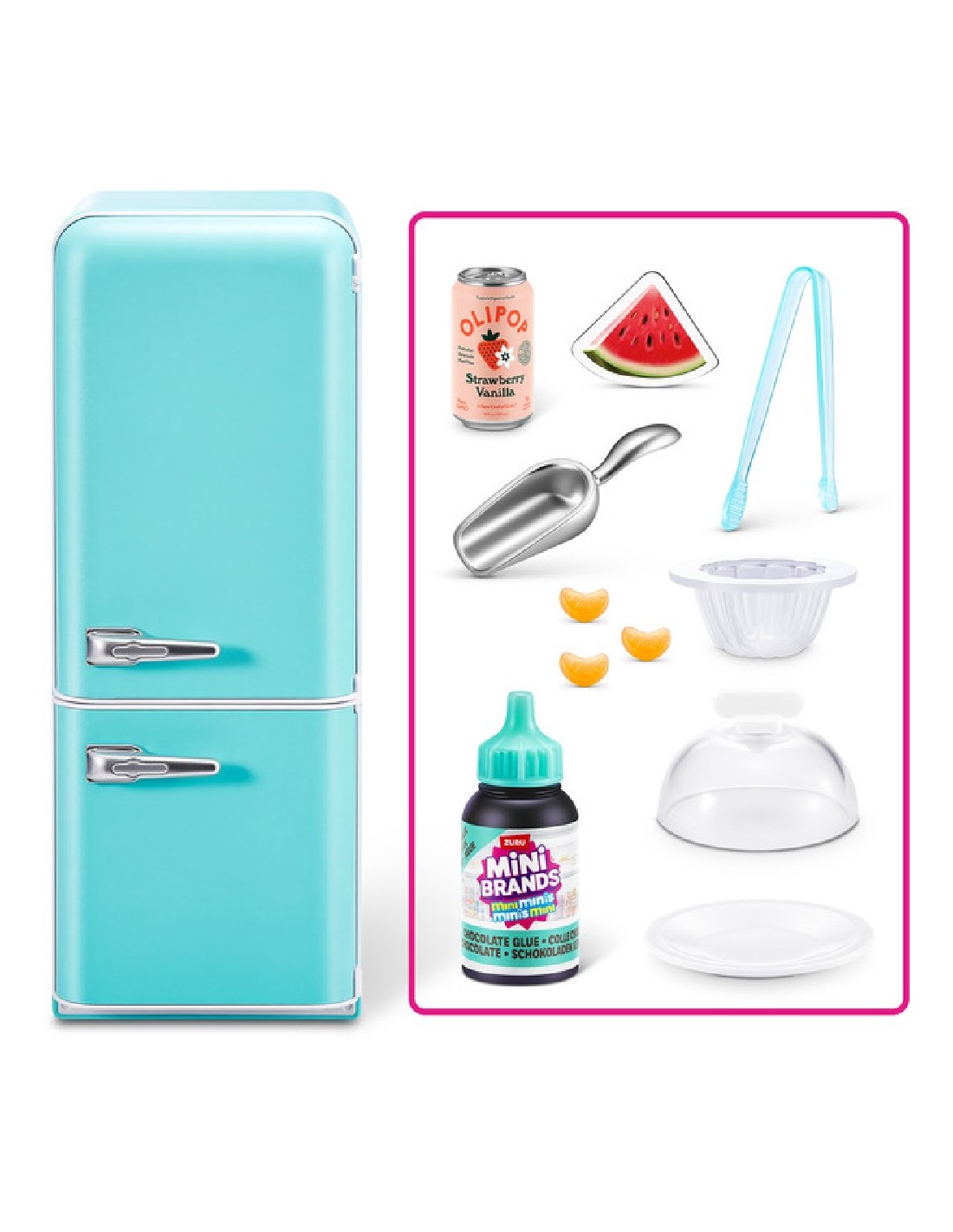 ZURUEl Fill the Fridge Mini Brands es la pieza central para quienes sueñan con montar su propia cocina en miniatura. Esta versión incluye solo la nevera retro, perfecta para que niños, niñas y coleccionistas organicen sus mini productos y disfruten recreando la tendencia viral de “restocking your fridge”.