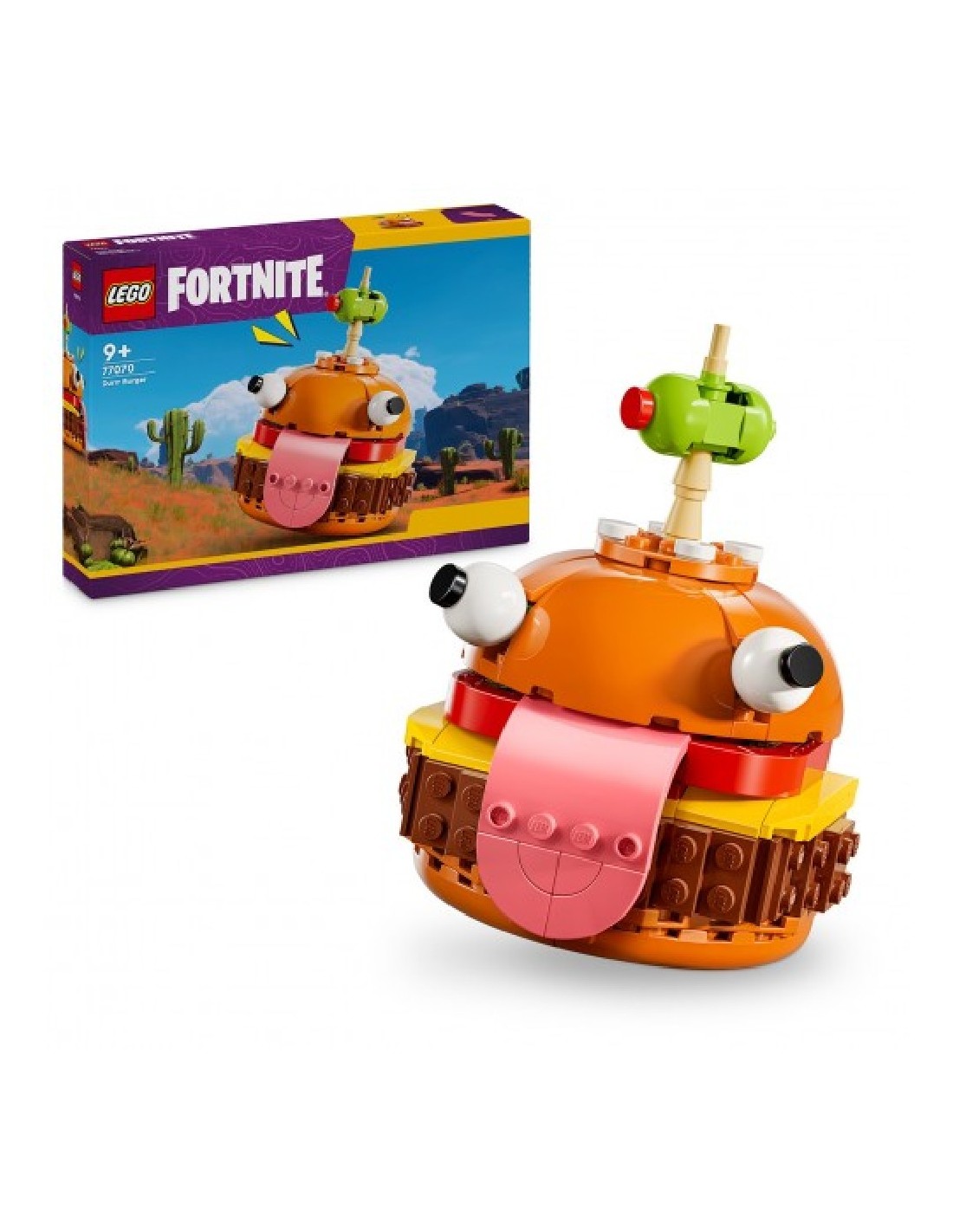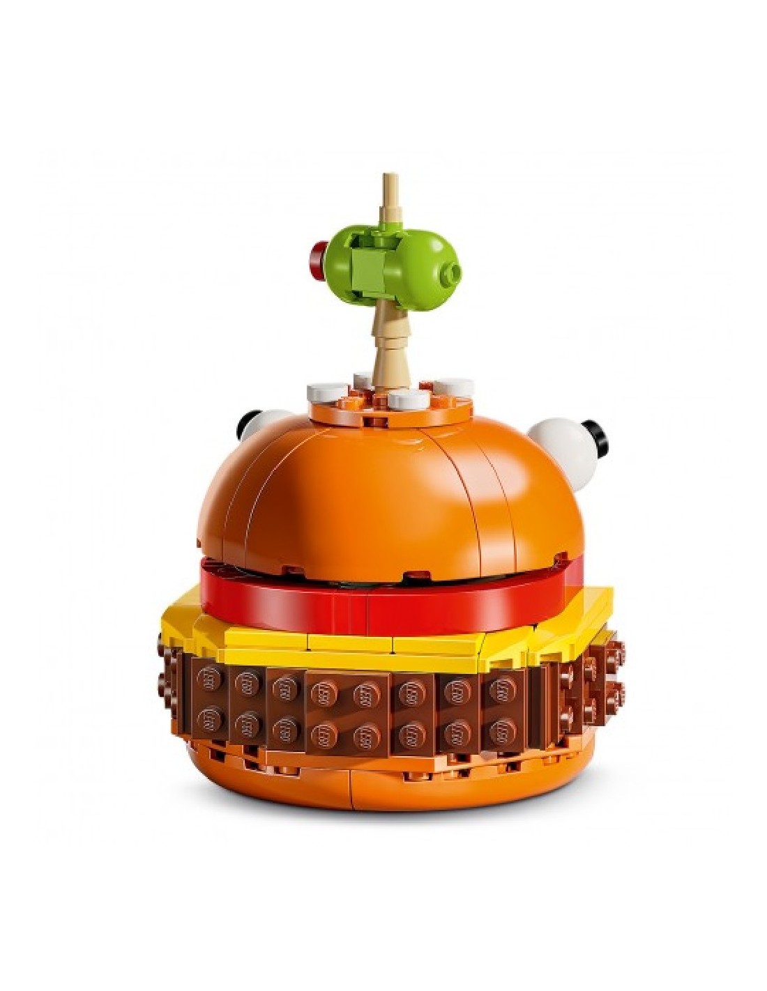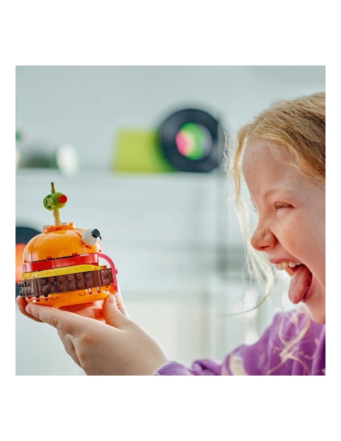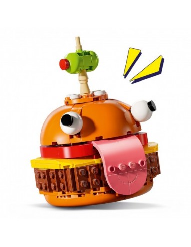 Alimenta la creatividad con la Hamburrrguesa LEGO Fortnite, un fantástico set de construcción para gamers. Basado en el videojuego LEGO Fortnite, el set ofrece a los fans la oportunidad de crear un modelo de exposición de Hamburrrguesa, la icónica mascota del restaurante del universo Fortnite. A los jóvenes gamers les esperan montones de diversión y muchas victorias en su punto construyendo el modelo antes de descubrir emocionantes detalles reconocibles al instante, como los ojos, la lengua y la aceituna en un palillo.