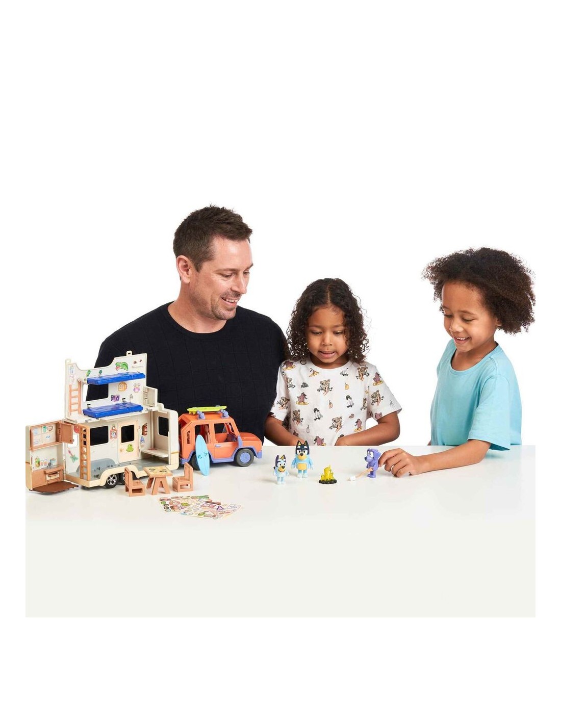 FAMOSAPreparate para una super aventura de acampada con Bluey y sus amigos, en este mega pack que combina la Campervan y el Family Cruiser lasaventuras de Bluey no cesaran. Carga las tablas de surf, sube a la familia en la Camper y vive una emocionante experiencia durmiendo o cocinando dentro de la caravana. Como en toda buena acampada no podrás olvidarte de hacer nubes de azúcar en la hoguera por las noches,