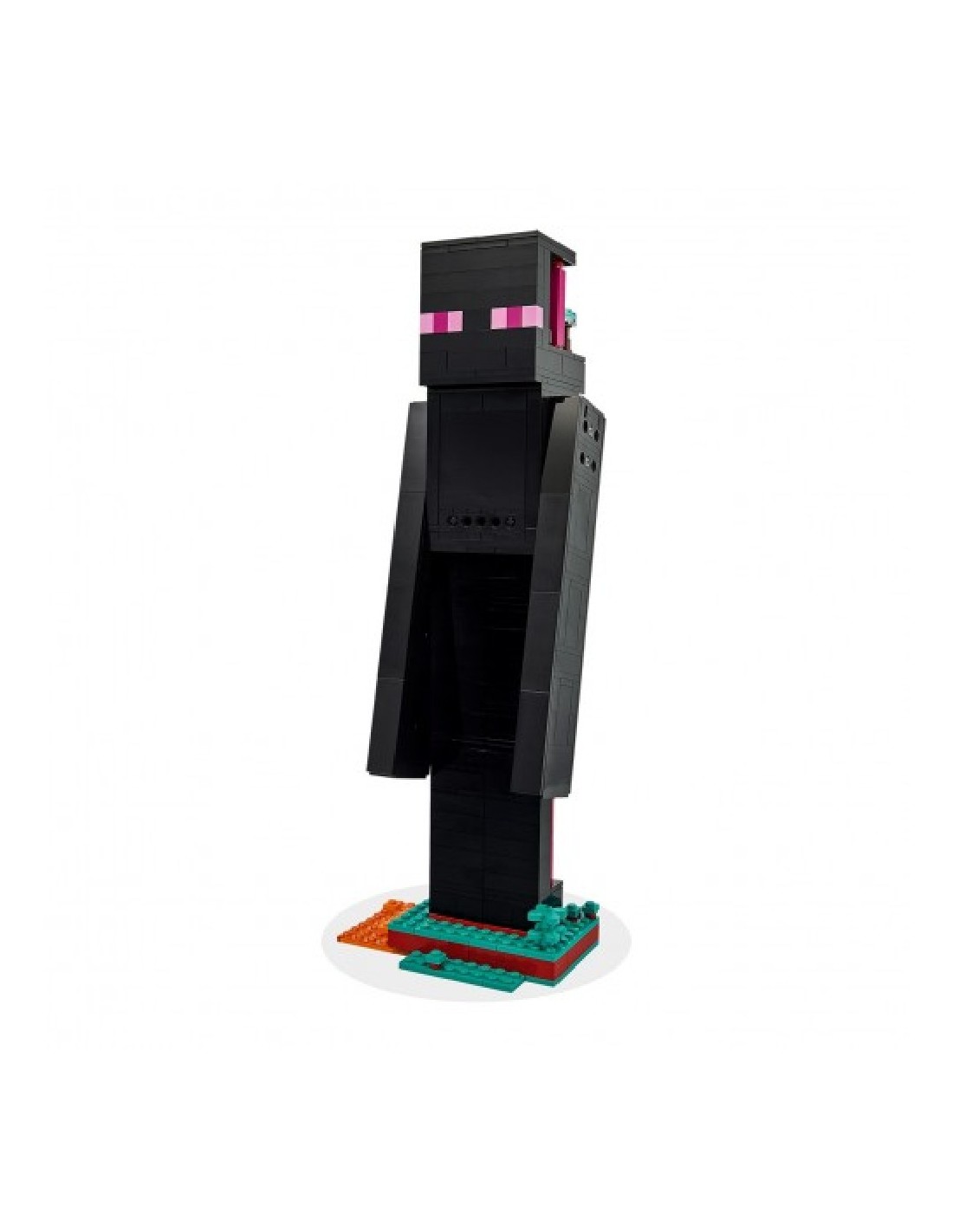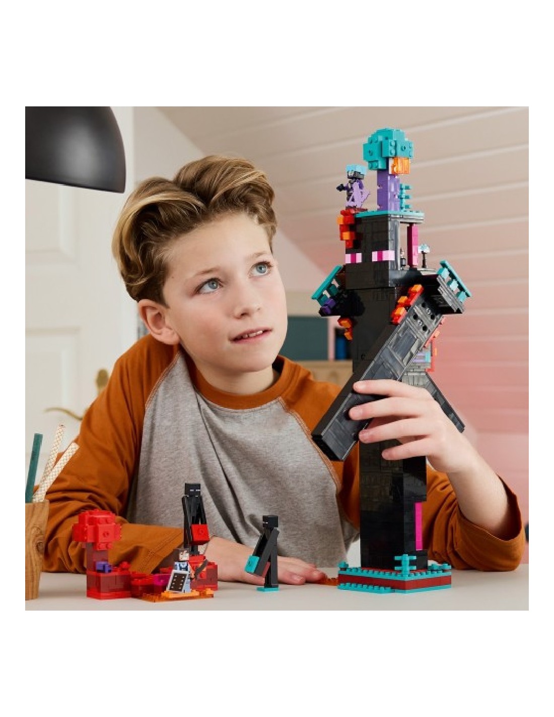 El set de alta calidad La Torre del Enderman es perfecto para peques a los que les encanta el juego creativo y la decoración inspirada en videojuegos. El modelo principal es una torre con forma de Enderman que tiene un portal del Inframundo en la cabeza, un balcón en cada hombro y 2 habitaciones con una mesa de trabajo, una mesa de encantamientos y una caja para guardar perlas de Ender. Las escaleras de mano permiten subir por las piernas, los brazos son articulados y, en el exterior, hay elementos de los biomas Bosque Carmesí y Bosque Deformado. El set incluye minifiguras de un Defensor Dimensional, un Asaltador de Reinos y 2 Endermans, además de figuras de 2 Endermitas. Encontrarás una ballesta, una espada y un escudo de Inframundita, y más armas Minecraft. Contiene 867 piezas.