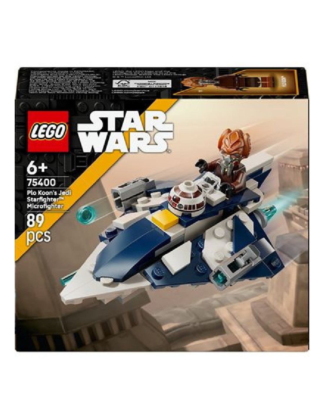 ¡Ofrece a tu peque una toma de contacto con el universo LEGO Star Wars a través del set Microfighter: Caza Estelar Jedi de Plo Koon! Este juguete de construcción, la primera recreación LEGO Star Wars Microfighters de un caza estelar Jedi, es un óptimo regalo de cumpleaños Star Wars para niños, niñas y fans a partir de 6 años. Diseñado como maqueta de Star Wars de construcción rápida, cuenta con detalles a imagen del caza estelar de Plo Koon que aparece en Star Wars: Las Guerras Clon y está equipado con cabina para una minifigura LEGO y 2 cañones que disparan. Este set de construcción incluye también una minifigura LEGO de Plo Koon con una espada láser azul que puedes fijar a la parte inferior del Microfighter. Viene con un elemento que representa la cabeza de R7-D4 para colocarlo en el fus